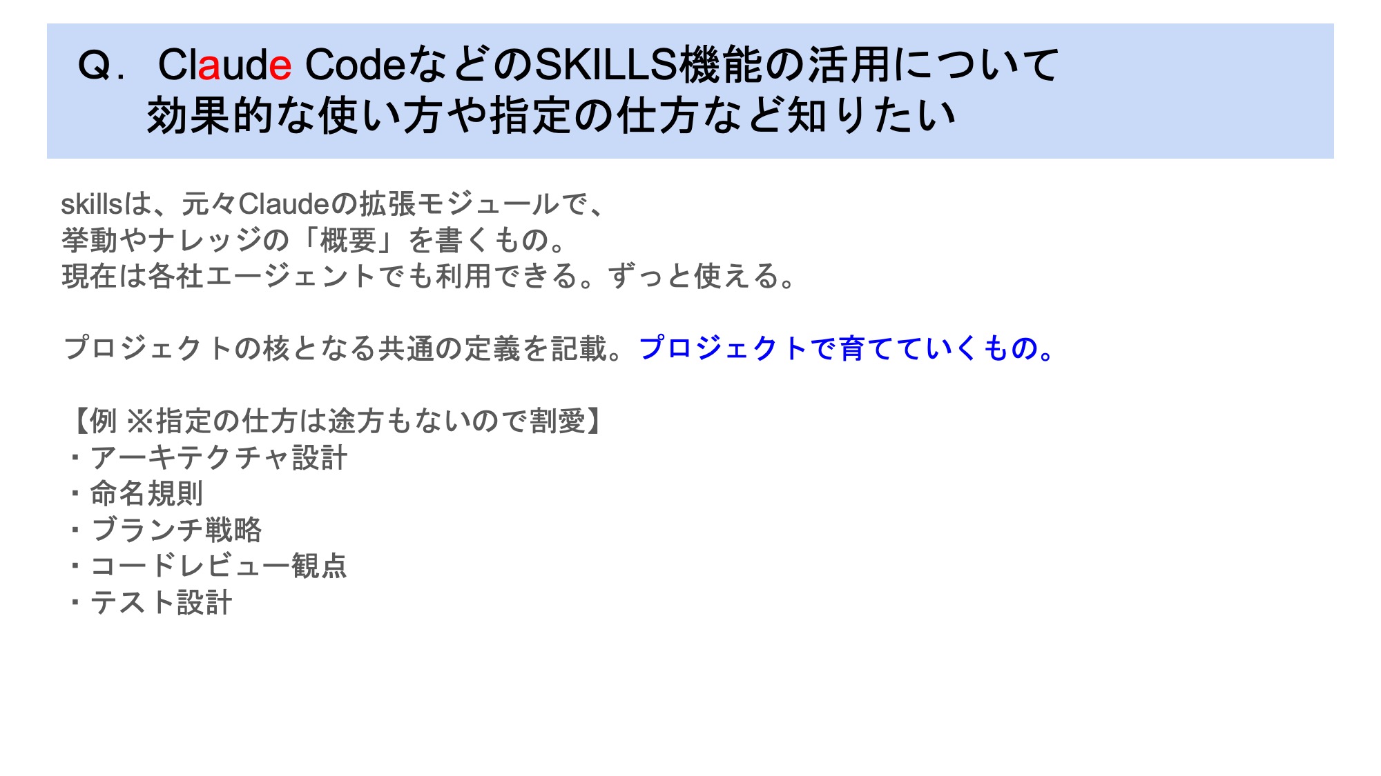 「skills=プロジェクトのノウハウをAIに教える仕組み」と理解してもらえればOKです。